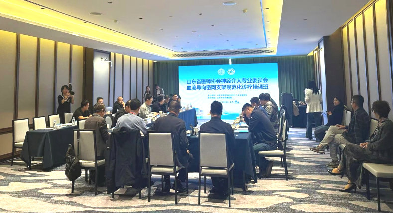 10月18日,山东省医师协会神经介入专业委员会血流导向密网支架规范化诊疗培训班在威海顺利举行。本次培训旨在提升我省神经介入领域医师在血流导向密网支架(FD)治疗颅内动脉瘤方面的规范化操作水平,推动先进介入技术的临床推广与经验交流。
