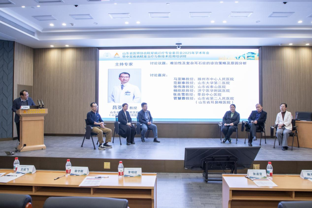 16日下午,会议设置讨论环节,由吕亚峰教授主持,山东省第二人民医院(山东省耳鼻喉医院)菅慧蓉、滕州市中心人民医院马亚琳、山东大学第二医院范新泰、山东省泰山医院张伟涛等多位专家参与。讨论围绕 “难治性及复杂耳石症的诊治策略及原因分析”展开,专家们结合临床实践案例,分享了各自在疑难病例处理中的经验与心得,针对诊疗过程中的痛点、难点问题进行深入探讨,形成了多项具有实操性的共识,为临床医生处理复杂病例提供了宝贵参考。