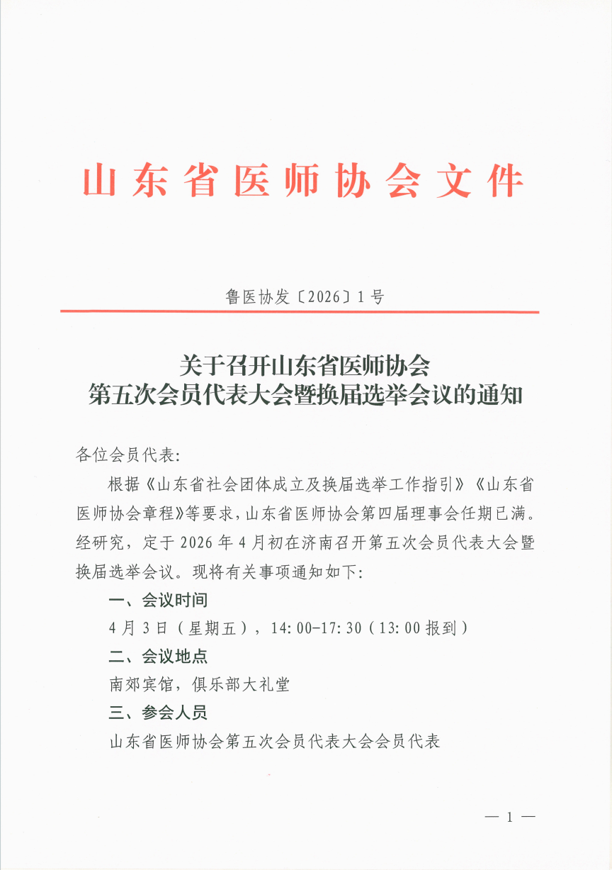 关于召开山东省医师协会第五次会员代表大会暨换届选举会议的通知