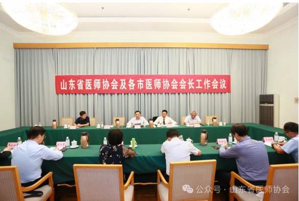 9月27日下午,山东省地市医师协会会长工作会议在南郊宾馆召开。中国医师协会副会长、山东省医师协会会长孙洪军出席会议并讲话,济南市医师协会会长孙常卿、泰安市医师协会会长于爱莲、临沂市医师协会会长魏延津、德州市医师协会会长张之营、东营市医师协会会长燕树义、滨州市医师协会会长徐宏、日照市医师协会会长安茂伟、潍坊市医师协会副会长李乃坤等参加会议,地市医师协会秘书长、省医师协会部分职能部门负责人列席。会议由山东省医师协会常务副会长任勇主持。